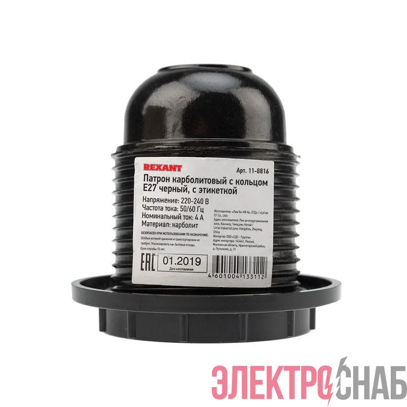 Товар Патрон E27 карболитовый с кольцом черн. с этикеткой Rexant 11-8816 доступен с доставкой по г. Красноярск, Красноярскому краю и территории РФ, или самовывозом.