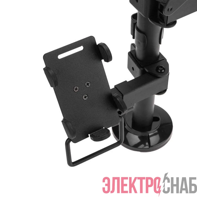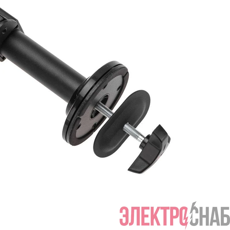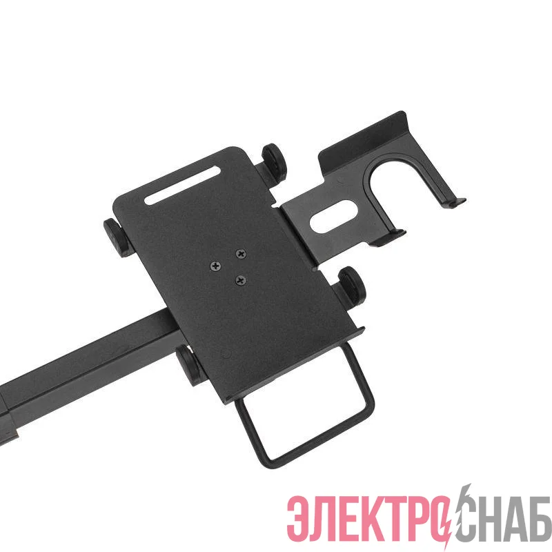 Кронштейн оснащен системой укладки кабеля вдоль корпуса, которая позволяет аккуратно уложить кабель, и тем самым, предотвратить спутывание проводов. Предназначен для настольного монтажа, крепление на струбцине позволяет быстро и легко установить кронштейн на рабочем месте.