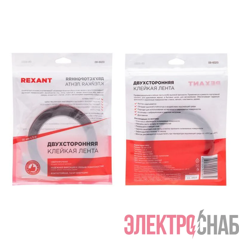 09-6020 | Скотч двустор. 20ммх5м красн. на серой основе REXANT