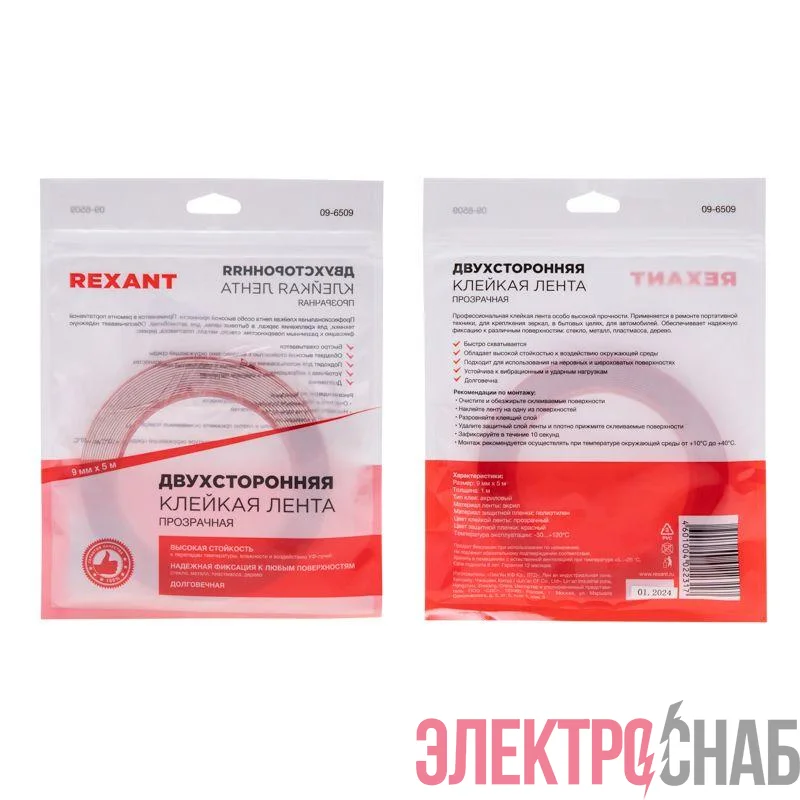 09-6509 | Скотч двухсторонний 9ммх5м прозр. Rexant