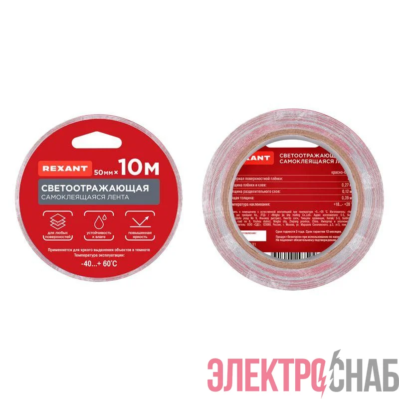 09-4331 | Лента светоотражающая самоклеящаяся 50ммх10м красн.-бел. Rexant