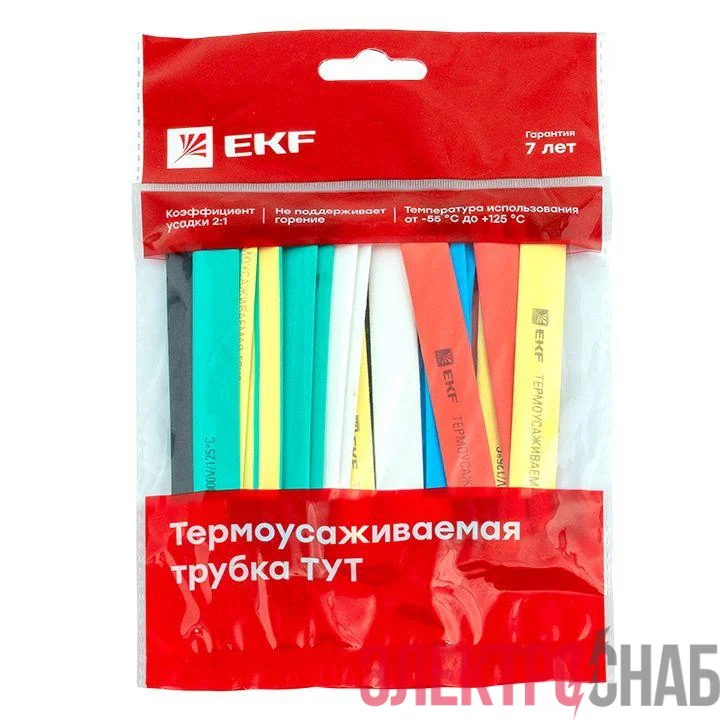 tut-n-10 | Набор трубок термоусадочных ТУТ нг тонкостен. 10/5 (7 цветов по 3шт 100мм) EKF