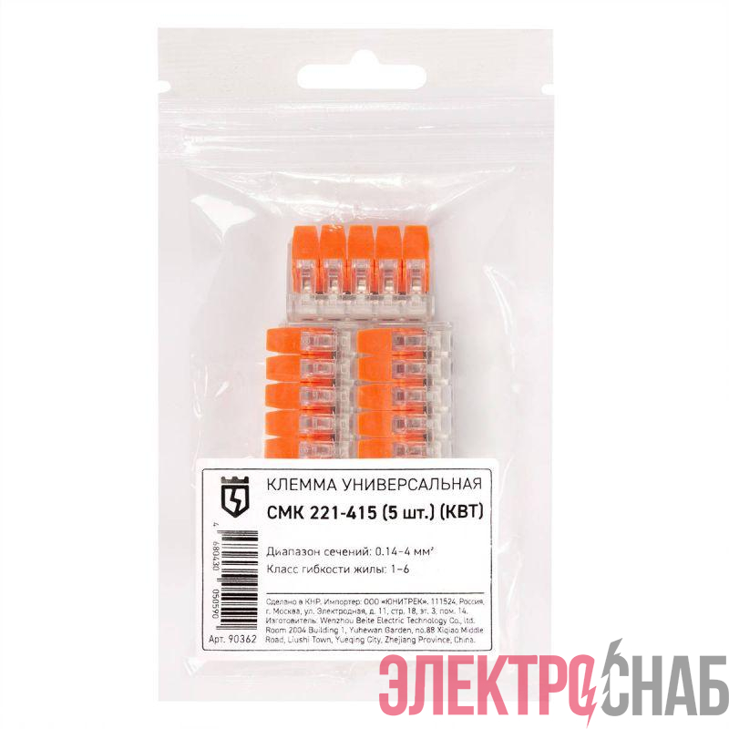 90361 | Клемма универсальная СМК 221-413 (уп.5шт) КВТ