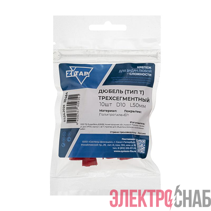 111484 | Дюбель распорный 10х50 трехсегментный (тип Т) (уп.10шт) пакет Tech-Krep