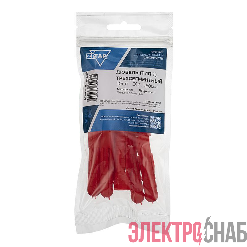 111485 | Дюбель распорный 12х60 трехсегментный (тип Т) (уп.10шт) пакет Tech-Krep