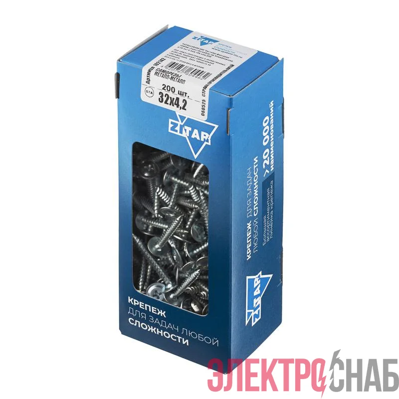 102142 | Саморез для тонкого метал. листа 4.2х32 (уп.200шт) коробка Tech-Krep
