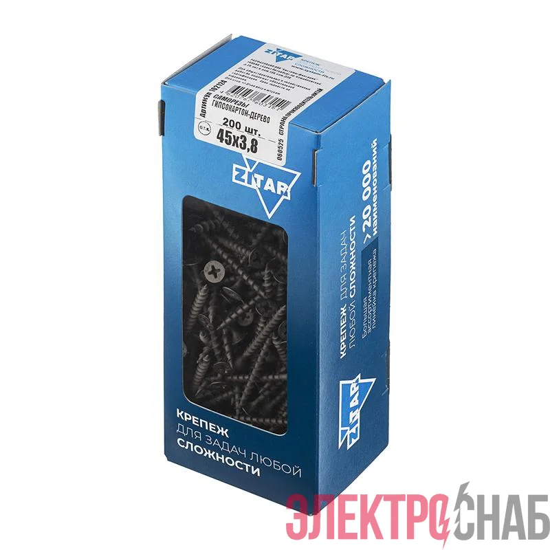 102124 | Саморез 3.8х45 гипсокартон-дерево (уп.200шт) коробка Tech-Krep