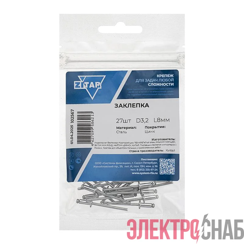 102567 | Заклепка 3.2х8 (уп.27шт) пакет Tech-Krep