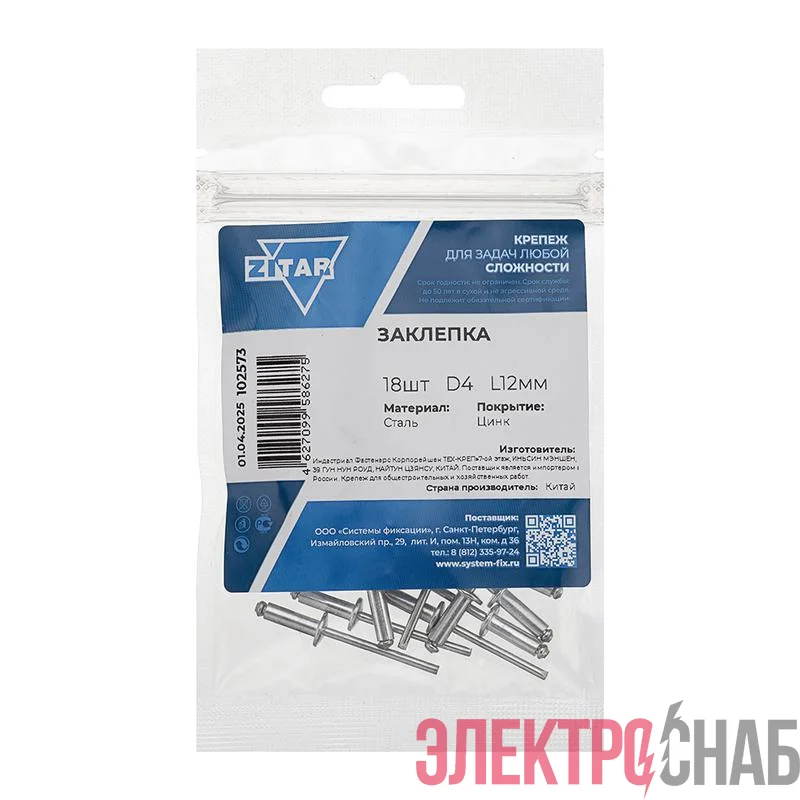 102573 | Заклепка 4.0х12 (уп.18шт) пакет Tech-Krep