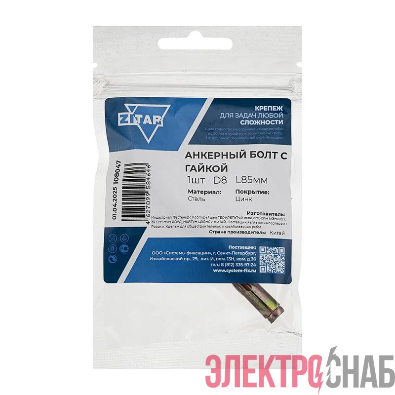 108047 | Болт анкерный с гайкой 8х85 пакет Tech-Krep