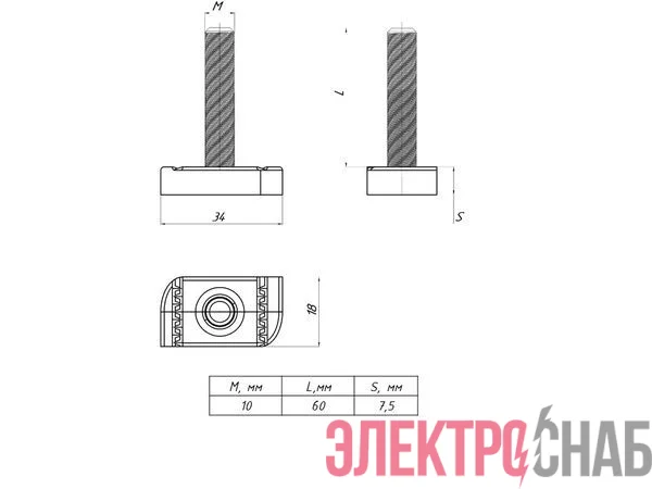 Болт Т-образный STRUT М10х60 EKF sttbm10x60