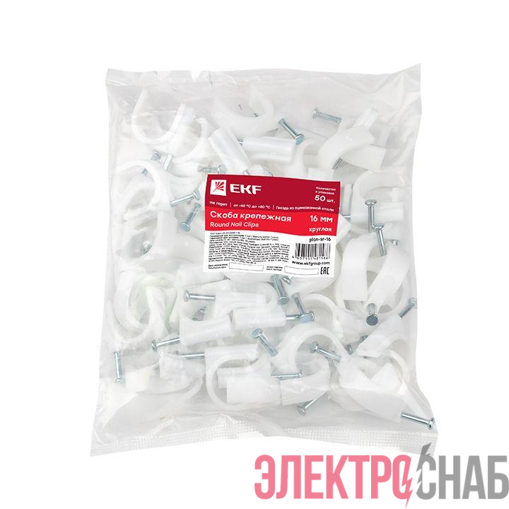 Скоба крепежная круглая с гвоздем d16мм пластик. (уп.50шт) EKF plcn-sr-16