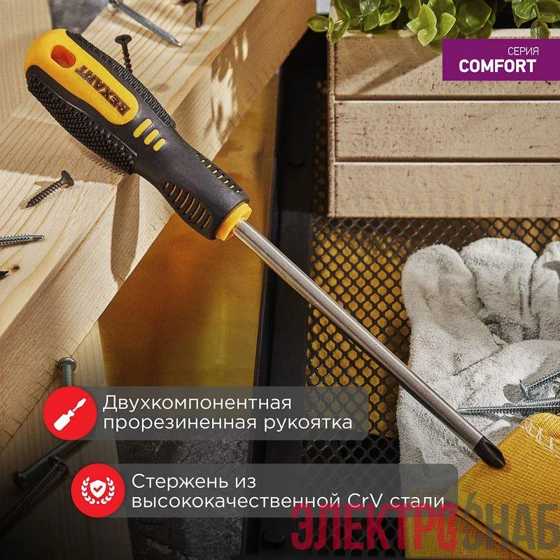 12-4729 | Отвертка крестовая PH 3х150мм двухкомпонентная рукоятка Rexant