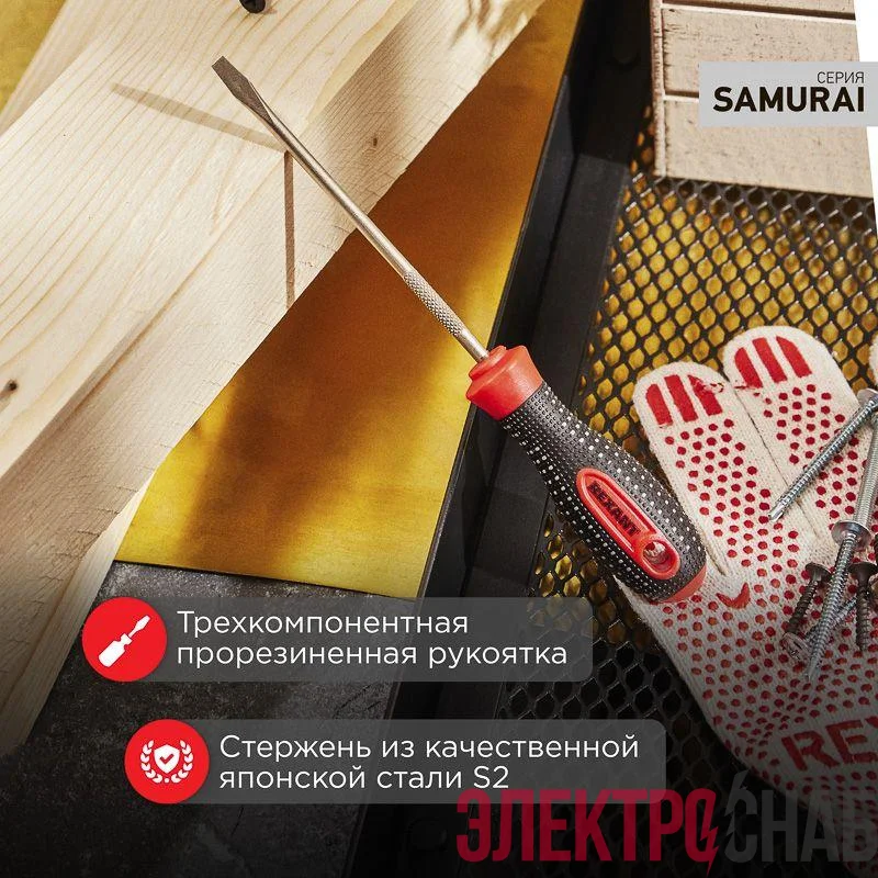 12-6424-1 | Отвертка шлицевая SL 4х100мм трехкомпонентная рукоятка сталь S2 Rexant