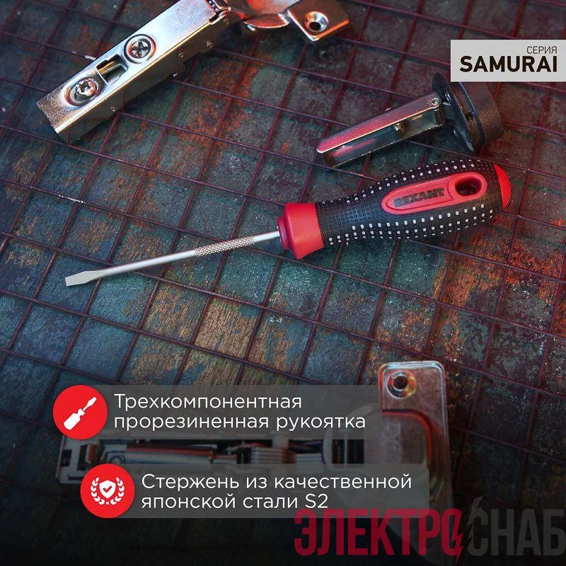 12-4722-1 | Отвертка шлицевая SL 5х100мм трехкомпонентная рукоятка сталь S2 Rexant