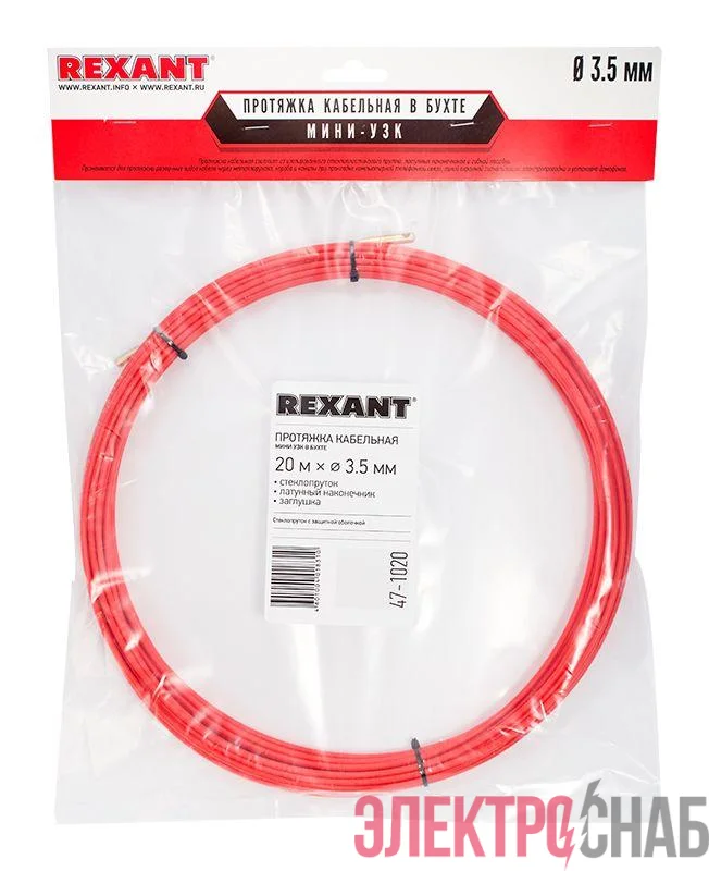47-1020 | Протяжка кабельная (мини УЗК в бухте) стеклопруток d3.5мм 20м красн. Rexant