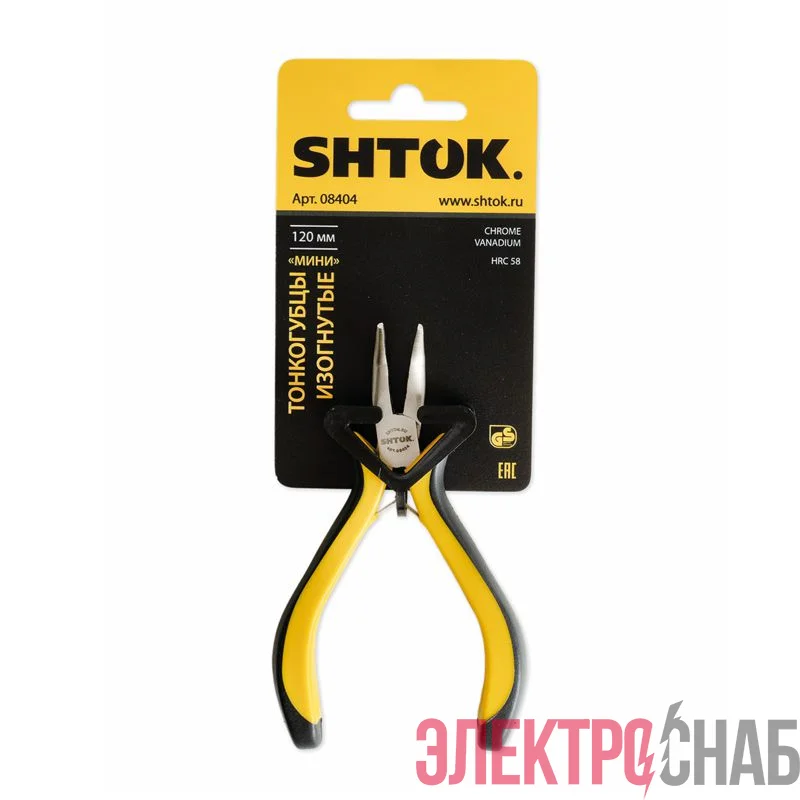 Нескользящие ручки изогнутых мини тонкогубцев SHTOK120 мм 08404 обеспечиваю надежность захвата и удержания инструмента.