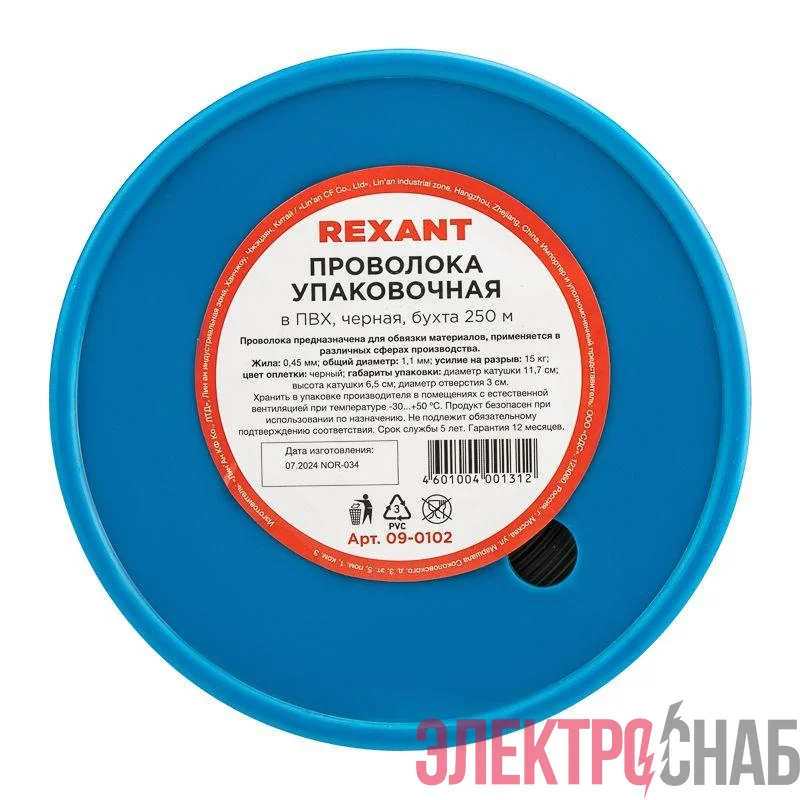 09-0102 | Проволока упаковочная в ПВХ черн. (бухта 250м) Rexant