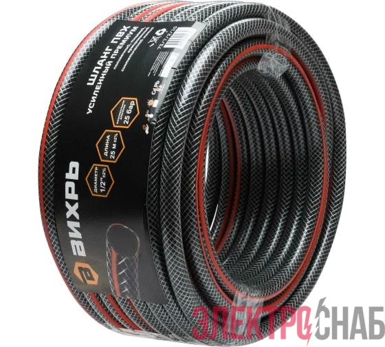 73/7/2/10 | Шланг поливочный ПВХ усиленный премиум пищевой трехслойн. армир. 1/2 25м черн.-красн. Вихрь