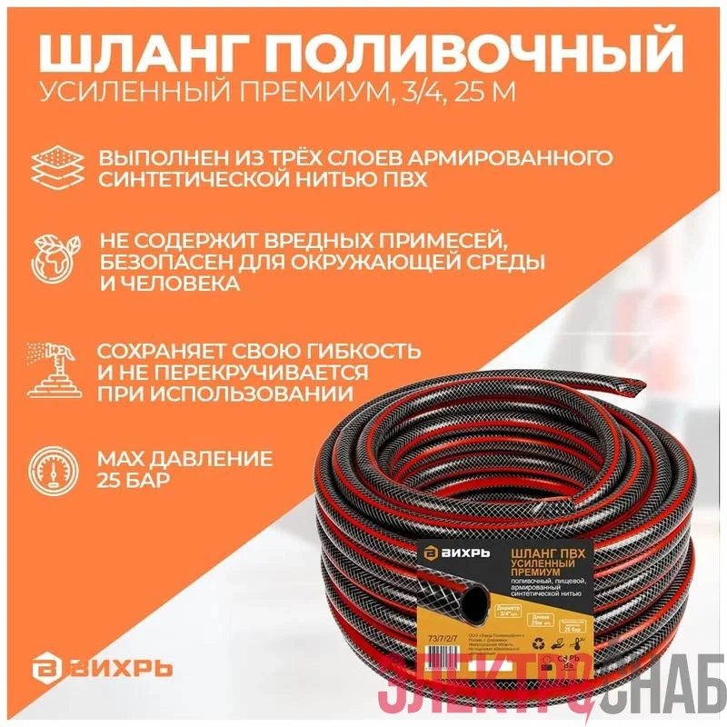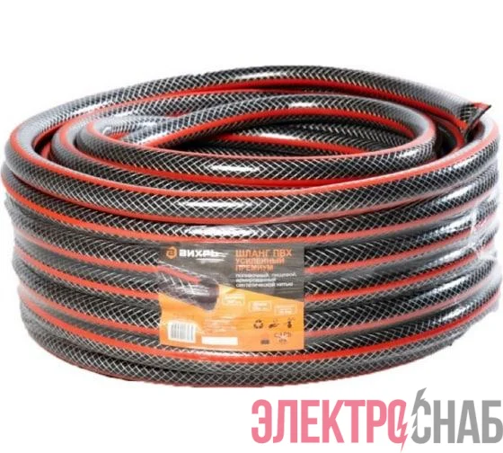 73/7/2/7 | Шланг поливочный ПВХ усиленный премиум пищевой трехслойн. армир. 3/4 25м черн.-красн. Вихрь