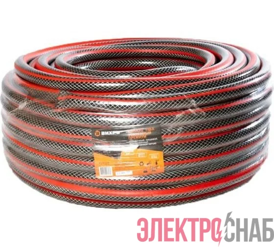 73/7/2/8 | Шланг поливочный ПВХ усиленный премиум пищевой трехслойн. армир. 3/4 50м черн.-красн. Вихрь