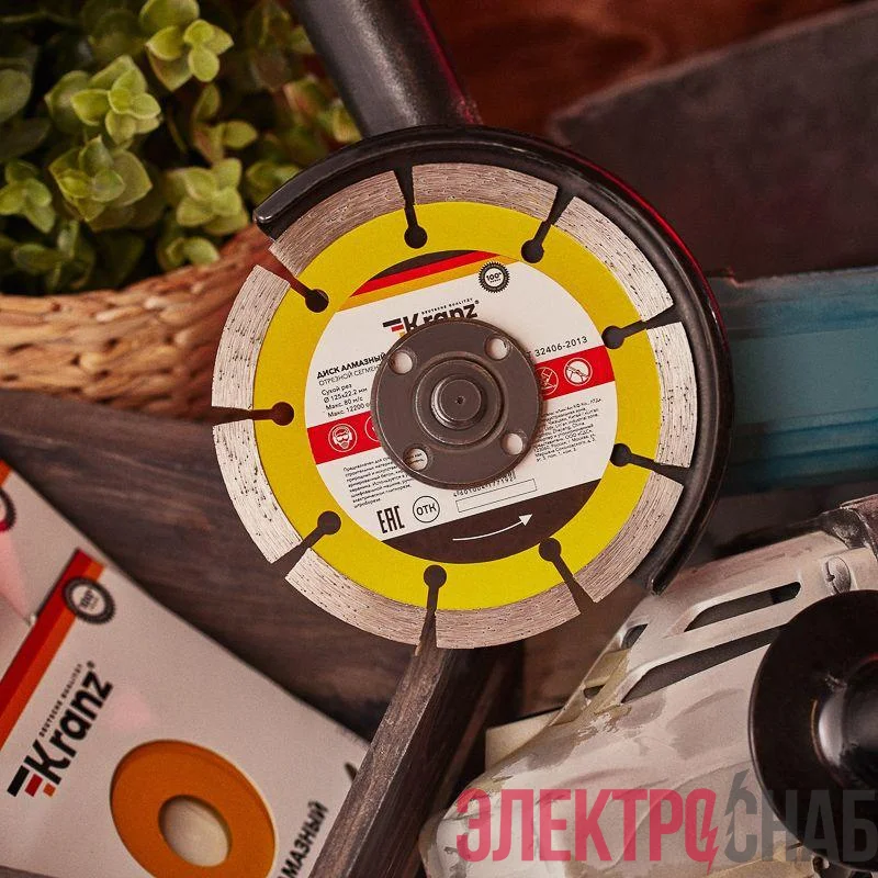 Сегментный алмазный отрезной диск предназначен для сухой резки строительных материалов, таких как природный и искусственный камень, армированный и неармированный бетон, кирпич, керамика, керамогранит. Используется в угловых шлифовальных машинах, ручных электрических плиткорезах, а также в штроборезах.