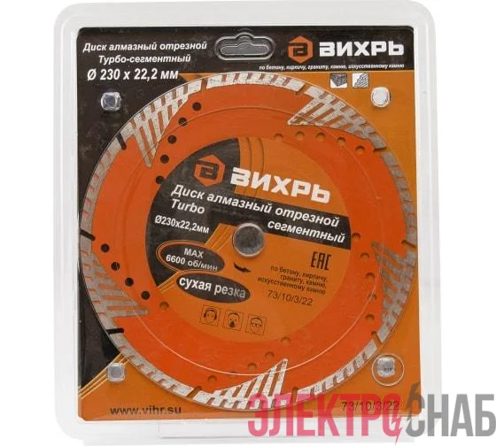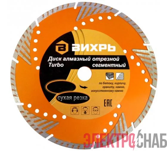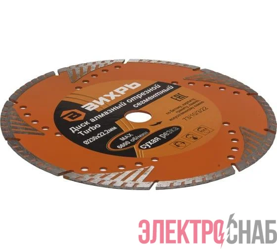 73/10/3/22 | Диск алмазный отрезной Турбо - сегментный 230х22.2мм сухая резка Вихрь