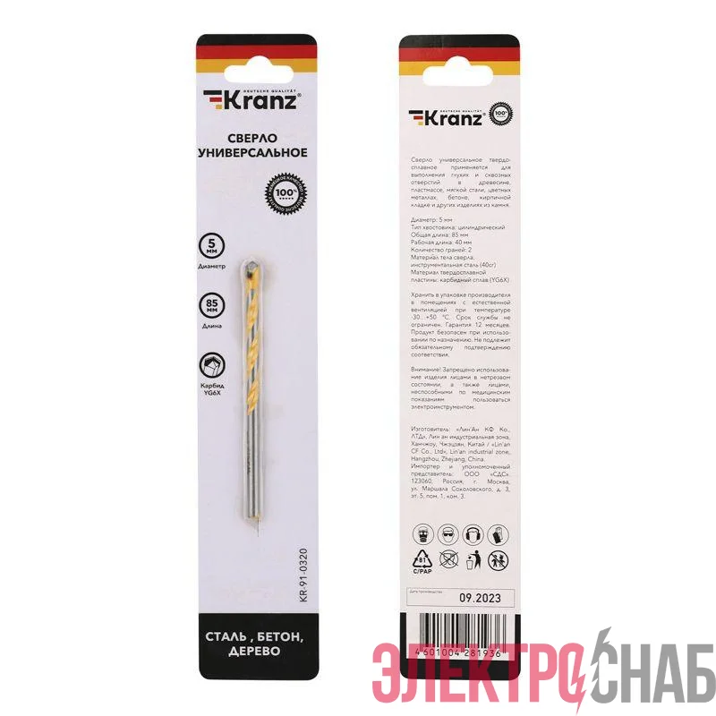KR-91-0320 | Сверло универсальное твердосплавное 5мм Kranz