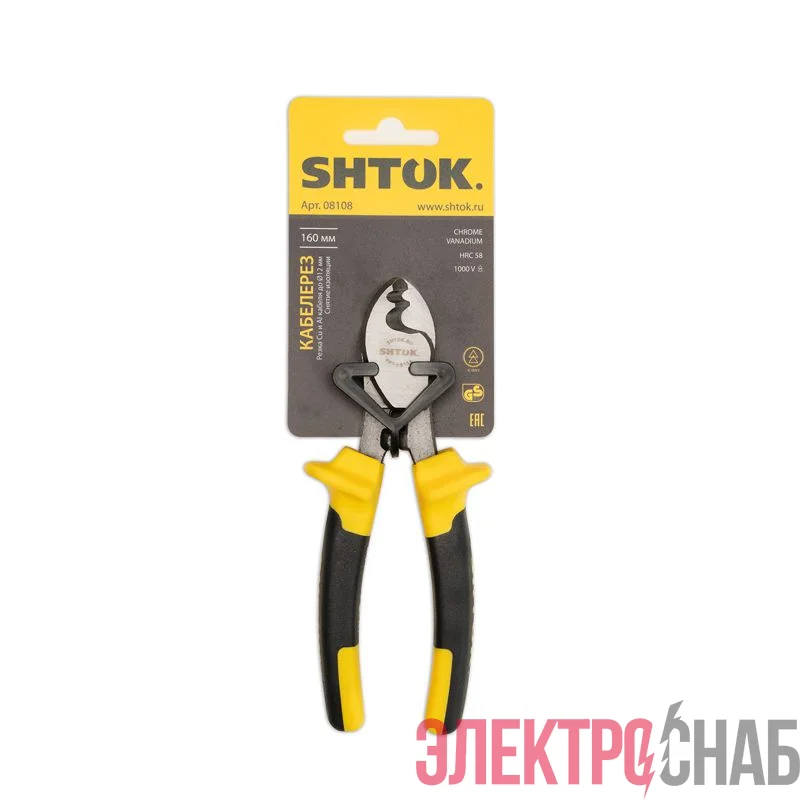 Рукоятки диэлектрического кабелереза SHTOK 1000В 08108 выполнены из PP/TPR пластика для удобства работы.