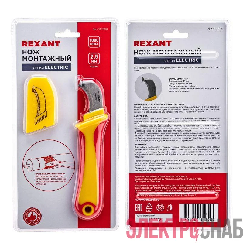 12-4935 | Нож монтажника нержавеющая сталь с "пяткой" Rexant