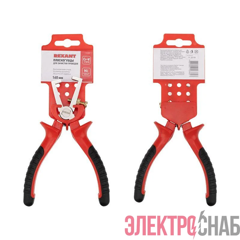 12-4646 | Плоскогубцы для зачистки проводов 160мм двухкомпонентн. рукоятки никелир. Rexant