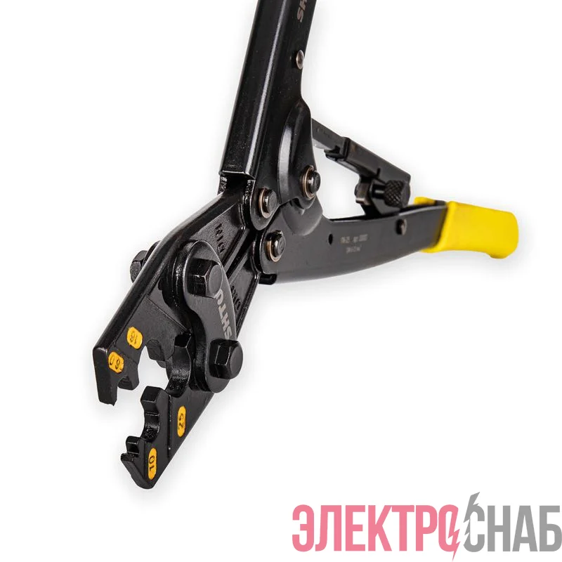 Особая конструкция ручных пресс-клещей SHTOK ПК-25 03007 плотно зажимает кабель, не давая ему ""выйти"" из рабочей области.