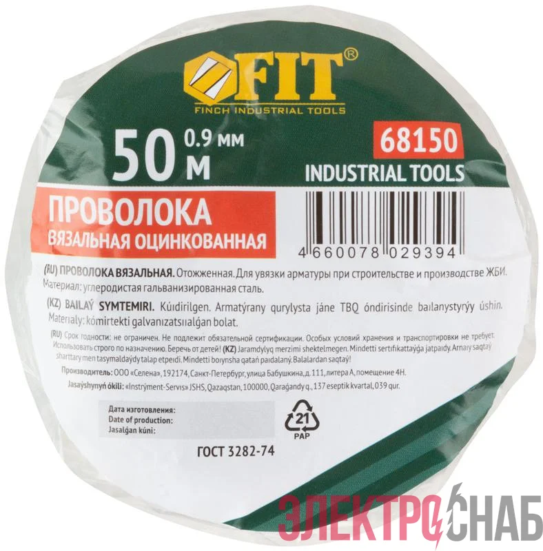 68150 | Проволока вязальная 0.9ммх50м оцинк. FIT